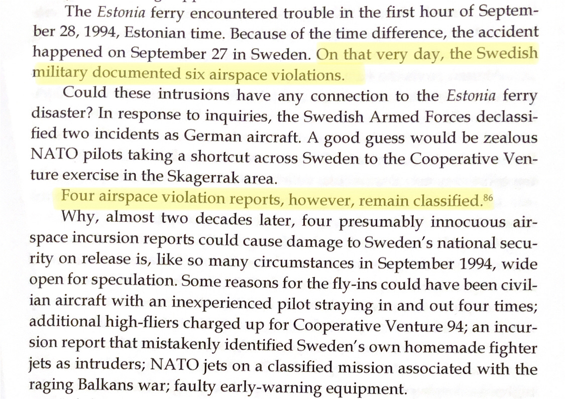 The only logical reason Sweden would do this is if they were acting on orders from another country whose sub shouldn’t have been there. Interestingly, there were six recorded violations of Sweden’s airspace on the night of the sinking, four of which remain classified to this day.